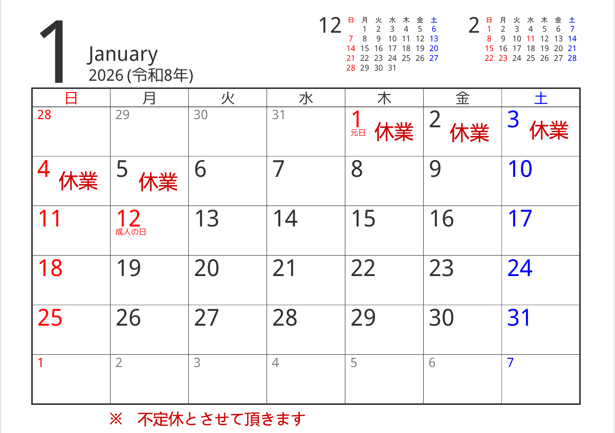2026年 本年も変わらぬご愛顧のほど宜しくお願い致します ※ 不定休とさせて頂きます